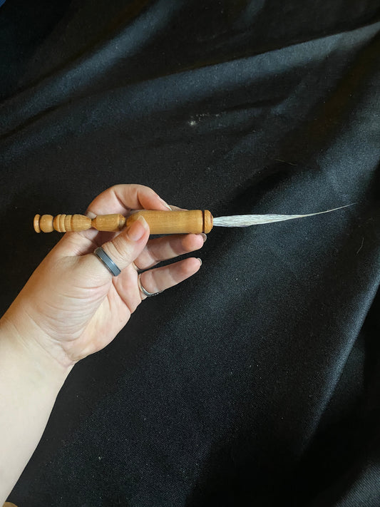 Shop allAll brushes are made using natural hairs for the heads, an assortment of different bamboo species for the handles, and leather or linen for the hanging straps. The decorative handle wraps are done with waxed braided cotton threads. I hand-craft them all in my Raleigh studio, using strong epoxy resins as the adhesive, and with minimal care will provide many years of use in your studio.